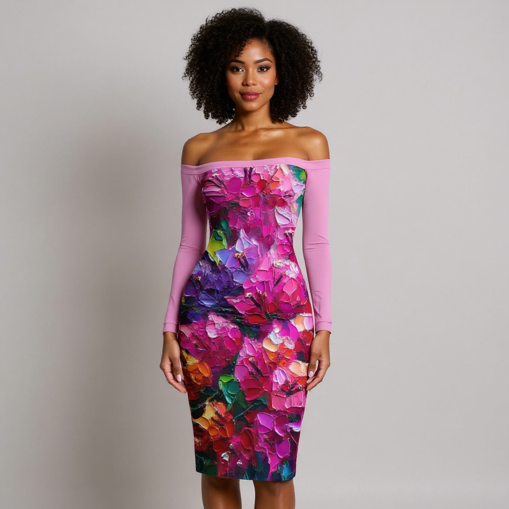 Step into your power with the Eclipse Bodycon Off-Shoulder Dress, a head-turning silhouette made for bold prints and bold confidence. Featuring an elegant off-the-shoulder neckline, long sleeves, and a sculpted pencil shape, this dress radiates sophistication while celebrating your curves in all the right ways.